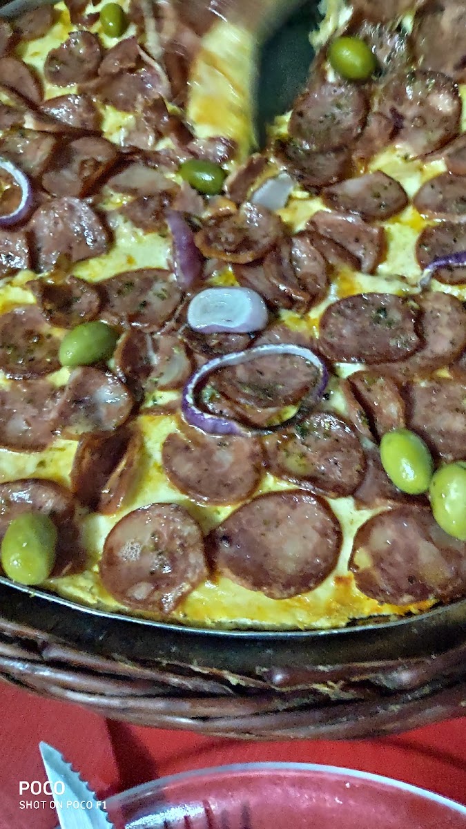 A pizza é ótima, não tem nenhum sabor que deixe a desejar..., No entanto o ambiente já é muito antigo não que isso interfira no sabor nem nada, mas poderia ter algo no, por exemplo um adesivo de parede bonito e que ao mesmo tempo divulgasse o local quando as pessoas tirassem fotos lá e sobre descartáveis... deveria ser usado apenas em ocasiões com crianças na mesa, pois além de afetar diretamente no meio ambiente ainda atrapalha no sabor da bebida. *Pizza boa, atendimento bom*. Banheiro.... deixa a desejar, da pra fazer o necessário? Da mas para um "restaurante" deveria ser mais bem planejado. Thanks, ainda como aí sempre. Hehehe.